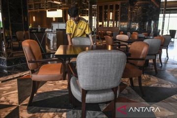 Pekerja merapihkan bangku di area restoran Swissotel Nusantara, IKN, Penajam Paser Utara, Kalimantan Timur, Jumat (2/8/2024). Swissotel Nusantara yang merupakan hotel bintang lima di IKN itu telah beroperasi dan siap menampung tamu pada upacara HUT Ke-79 Kemerdekaan RI di IKN. ANTARA FOTO/Hafidz Mubarak A/tom.