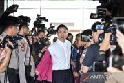 Terdakwa kasus dugaan korupsi pengelolaan tata niaga komoditas timah Harvey Moeis (tengah) bersiap memasuki ruang sidang untuk menjalani sidang perdana di Pengadilan Tipikor, Jakarta, Rabu (14/8/2024). Sidang perdana dengan terdakwa suami artis Sandra Dewi itu beragendakan pembacaan dakwaan oleh Jaksa Penuntut Umum (JPU). ANTARA FOTO/Aprillio Akbar/tom.