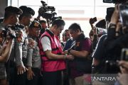 Petugas kejaksaan melepas borgol terdakwa kasus dugaan korupsi pengelolaan tata niaga komoditas timah Harvey Moeis (tengah) sebelum menjalani sidang perdana di Pengadilan Tipikor, Jakarta, Rabu (14/8/2024). Sidang perdana dengan terdakwa suami artis Sandra Dewi itu beragendakan pembacaan dakwaan oleh Jaksa Penuntut Umum (JPU). ANTARA FOTO/Aprillio Akbar/tom.