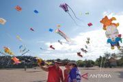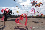 Wisatawan mancanegara berswafoto saat pembukaan penerbangan layang-layang internasional pada Rare Angon Festival di Pantai Mertasari Sanur, Denpasar, Bali, Kamis (15/8/2024). Kegiatan yang digelar pada 15-18 Agustus 2024 tersebut menampilkan sekitar 1.200 layang-layang tradisional, nasional, dan internasional dengan diikuti peserta dari 17 negara. ANTARA FOTO/Nyoman Hendra Wibowo/rwa.