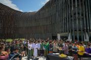 Kepala Sekretariat Presiden Heru Budi Hartono (kelima kanan) menyerahkan nasi tumpeng usai doa bersama lintas agama jelang pelaksanaan upacara HUT ke-79 RI di Istana Garuda Ibu Kota Nusantara (IKN), Penajam Paser Utara, Kalimantan Timur, Jumat (16/8/2024). Upacara peringatan HUT ke-79 RI diadakan di dua tempat yaitu di Istana Merdeka, Jakarta, dan di Ibu Kota Nusantara (IKN). ANTARA FOTO/Fauzan/foc.