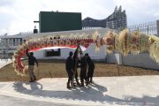Dua petugas mengecek kondisi rumput Istana Garuda jelang pelaksanaan upacara HUT ke-79 RI di Ibu Kota Nusantara (IKN), Penajam Paser Utara, Kalimantan Timur, Jumat (16/8/2024). Upacara peringatan HUT kemerdekaan RI tahun ini diadakan di dua tempat yaitu di Istana Merdeka, Jakarta, dan di Ibu Kota Nusantara (IKN). ANTARA FOTO/Fauzan/foc.
