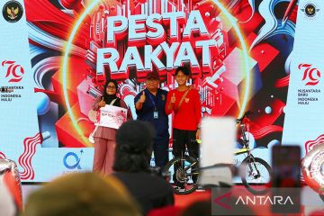 Konsul Jenderal Republik Indonesia Johor Bahru Sigit S Widiyanto (tengah) memberikan hadiah kepada WNI yang hadir pada Pesta Rakyat Asyik di Konsulat Jenderal Republik Indonesia (KJRI) Johor Bahru, Johor Bahru, Malaysia, Minggu (25/8/2024). KJRI Johor Bahru menggelar Pesta Rakyat Asyik dalam rangkaian perayaan HUT Ke-79 Kemerdekaan Republik Indonesia. ANTARA FOTO/Virna Puspa Setyorini/Spt.