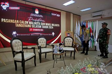 Personel Polri dan TNI mengecekan keamanan ruang pendaftaran Pilkada Tangsel di Kantor KPU Kota Tangerang Selatan, Serpong, Tangerang Selatan, Banten, Selasa (27/8/2024). Sebanyak 300 lebih petugas gabungan akan menjaga keamanan kantor KPU serta proses pendaftaran calon walikota dan wakil walikota Tangerang Selatan. ANTARA FOTO/Muhammad Iqbal/nym.