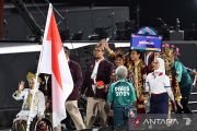 Sejumlah atlet kontingen Indonesia melakukan defile dalam pembukaan Paralimpiade Paris 2024 di Place de la Concorde, Paris, Prancis, Rabu (28/8/2024). Kontingen Indonesia diperkuat 35 atlet yang bertanding pada 10 cabang olahraga pada ajang olahraga terbesar sedunia yang diikuti atlet penyandang disabilitas dari berbagai negara. ANTARA FOTO/HO-NPC/Spt.