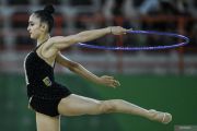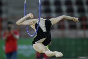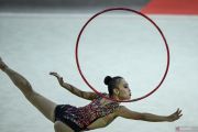 Pesenam Lampung Sutjiati Kelanaritma Narendra beraksi dalam dalam nomor simpai senam ritmik perorangan serba bisa PON XXI Aceh-Sumut di Gedung Serbaguna Dispora Sumatera Utara, Deli Serdang, Selasa (3/9/2024). ANTARA FOTO/Nova Wahyudi/tom.