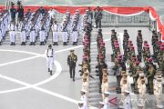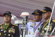Panglima TNI Jenderal TNI Agus Subiyanto (tengah) memeriksa pasukan saat menjadi inspektur upacara pada peringatan HUT Ke-79 TNI Angkatan Laut di KRI dr. Radjiman Wedyodiningrat-992, Perairan Teluk Jakarta, Selasa (10/9/2024). Peringatan HUT Ke-79 TNI AL tersebut mengambil tema "Dengan Semangat Jalesveva Jayamahe TNI AL Siap Mewujudkan Nusantara Baru Indonesia Maju". ANTARA FOTO/Muhammad Adimaja/Spt.