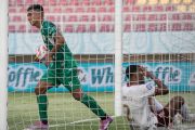 Pesepak bola PSS Sleman Gustavo Henrique Barbosa Freire (kiri) mengambil bola dari dalam gawang Borneo FC Samarinda usai terjadi gol bunuh diri pada pertandingan BRI Liga I 2024/2025 di Stadion Manahan, Solo, Jawa Tengah, Kamis (12/9/2024). PSS Sleman imbang melawan Borneo FC Samarinda dengan skor 1-1. ANTARA FOTO/Mohammad Ayudha/foc.