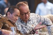 Menteri ESDM Bahlil Lahadalia (kiri) berbincang dengan Menteri Perindustrian Agus Gumiwang (kanan) sebelum sidang kabinet paripurna terakhir di Istana Garuda, Ibu Kota Nusantara (IKN), Penajam Paser Utara, Kalimantan Timur, Jumat (13/09/2024). Dalam sidang kabinet terakhir dari Kabinet Indonesia Maju itu Presiden Joko Widodo menyampaikan terima kasih atas dedikasi anggota kabinet, Panglima TNI dan Kapolri dalam melaksanakan program dan visi presiden dan wapres serta mengingatkan untuk menuntaskan program kerja utama yang sudah dimulai baik berkaitan dengan serapan, administrasi pertanggung jawaban, dan kendala yang belum terselesaikan. ANTARA FOTO/M Risyal Hidayat/Spt.