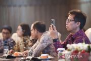 Menteri Kesehatan Budi Gunadi Sadikin (kanan) mengoperasikan gawainya sebelum sidang kabinet paripurna terakhir di Istana Garuda, Ibu Kota Nusantara (IKN), Penajam Paser Utara, Kalimantan Timur, Jumat (13/09/2024). Dalam sidang kabinet terakhir dari Kabinet Indonesia Maju itu Presiden Joko Widodo menyampaikan terima kasih atas dedikasi anggota kabinet, Panglima TNI dan Kapolri dalam melaksanakan program dan visi presiden dan wapres serta mengingatkan untuk menuntaskan program kerja utama yang sudah dimulai baik berkaitan dengan serapan, administrasi pertanggung jawaban, dan kendala yang belum terselesaikan. ANTARA FOTO/M Risyal Hidayat/Spt.