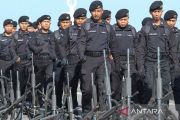 Sejumlah prajurit TNI AL mengikuti upacara peringatan HUT Ke-65 Hiu Kencana di depan Monumen Candrasa, Koarmada II, Surabaya, Jawa Timur, Jumat (13/9/2024). TNI AL menggelar peringatan HUT Ke-65 Hiu Kencana yaitu satuan khusus kapal selam dengan upacara militer dipimpin langsung KSAL. ANTARA FOTO/Didik Suhartono/Spt.