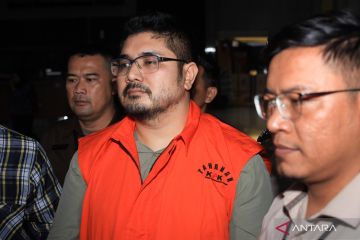 Direktur Utama PT Energi Kita Indonesia Satrio Wibowo (tengah) berjalan usai ditetapkan sebagai tersangka kasus dugaan korupsi pengadaan alat pelindung diri (APD) di Kemenkes tahun anggaran 2020 di Gedung Merah Putih KPK, Jakarta, Kamis (3/10/2024). KPK menetapkan Satrio Wibowo, Mantan Kepala Pusat Krisis Kesehatan Kementerian Kesehatan Budi Sylvana, dan Direktur Utama PT Permana Putra Mandiri (PPM) Ahmad Taufik sebagai tersangka kasus dugaan korupsi yang mengakibatkan kerugian negara sebesar Rp319 miliar itu. ANTARA FOTO/Reno Esnir/aww.