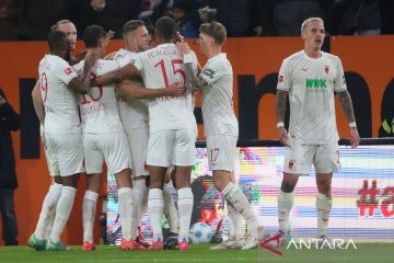 Sejumlah pesepak bola Augsburg merayakan gol dalam pertandingan Liga Jerman melawan Augsburg di Stadion WKK Arena, Augsburg, Jerman (4/10/2024). Augsburg menang dengan skor 2-1. ANTARA FOTO/Xinhua/Philippe Ruiz/tom.