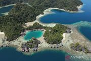 Foto udara Pulau Labengki kecil di Desa Wisata Labengki, Kabupaten Konawe Utara, Sulawesi Tenggara, Jumat (11/10/2024). Dari 6.016 desa wisata yang mendaftar melalui platform Jejaring Desa Wisata (Jadesta), Desa Wisata Labengki berhasil masuk dalam daftar 50 desa wisata terbaik nasional setelah melewati proses penilaian beberapa aspek yakni daya tarik wisata, SDM, digitalisasi, serta resiliensi destinasi. ANTARA FOTO/Andry Denisah/wpa.