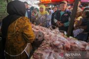 Calon Gubernur Jawa Timur nomor urut dua Khofifah Indar Parawansa (kedua kiri) berdialog dengan pedagang saat berkampanye di pasar Sepanjang, Taman, Sidoarjo, Jawa Timur, Rabu (16/10/2024). Khofifah mensosialisasikan dirinya sebagai calon gubernur serta meninjau fasilitas pasar dan mendengarkan keluhan dari sejumlah pedagang terkait pasokan kebutuhan sehari-hari. ANTARA FOTO/Umarul Faruq/rwa.