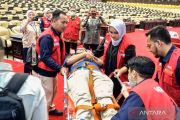 Petugas kesehatan melakukan simulasi penyelamatan VVIP di Ruang Rapat Paripurna I Gedung Nusantara, Kompleks Parlemen, Senayan, Jakarta, Kamis (17/10/2024). Sejumlah persiapan dilakukan jelang pelantikan Presiden dan Wakil Presiden terpilih Prabowo Subianto dan Gibran Rakabuming Raka akan diambil sumpahnya sebagai Presiden dan Wakil Presiden masa bakti 2024 - 2029 pada Minggu (20/10). ANTARA FOTO/Rivan Awal Lingga/nym.