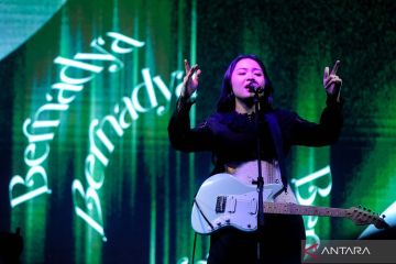 Penyanyi Bernadya tampil saat Festival Muda Berkarya di Rangkasbitung, Lebak, Banten, Sabtu (19/10/2024). Dalam penampilannya, Bernadya menyanyikan sejumlah lagu hits diantaranya Untungnya Hidup Harus Tetap Berjalan, Satu Bulan, Kini Mereka Tahu, dan Lama-lama. ANTARA FOTO/Muhammad Bagus Khoirunas/aww.