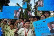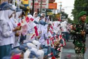 Sejumlah siswa membawa bendera Merah Putih saat akan menyambut kegiatan rapat kerja Presiden Prabowo Subianto dan retret Kabinet Merah Putih 2024-2029 di kawasan Akademi Militer (Akmil) Magelang, Jawa Tengah, Kamis (24/10/2024). Para menteri dan wakil menteri Kabinet Merah Putih akan mengikuti kegiatan pembekalan pada 25-27 Oktober 2024 di Akmil Magelang. ANTARA FOTO/Muhammad Adimaja/aww.