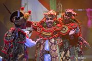 Aktris dari Sanggar Kedathon Ati asal Klaten, Jawa Tengah menampilkan reaktualisasi Wayang Gedhog Madura yang berjudul Palung Tempat Rindumu Pulang dalam Festival Budaya Panji 2024 di Gedung Kesenian Jakarta (GKJ), Jakarta, Kamis (24/10/2024). Festival yang bertujuan untuk memperkuat warisan budaya Panji sebagai salah satu bentuk ekspresi seni yang diakui oleh dunia ini menampilkan sepuluh kelompok seni terpilih dari berbagai daerah di Indonesia. ANTARA FOTO/Aditya Pradana Putra/aww.