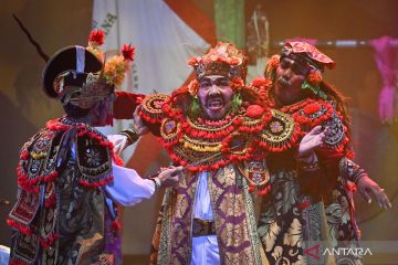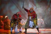 Sejumlah aktor dari Sanggar Seni Satriya Lelana asal Bali menampilkan seni drama dan tari berjudul Pranaraga dalam Festival Budaya Panji 2024 di Gedung Kesenian Jakarta (GKJ), Jakarta, Kamis (24/10/2024). Festival yang bertujuan untuk memperkuat warisan budaya Panji sebagai salah satu bentuk ekspresi seni yang diakui oleh dunia ini menampilkan sepuluh kelompok seni terpilih dari berbagai daerah di Indonesia. ANTARA FOTO/Aditya Pradana Putra/aww.