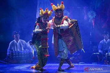 Aktor dan aktris dari Sanggar Seni Satriya Lelana asal Bali menampilkan seni drama dan tari berjudul Pranaraga dalam Festival Budaya Panji 2024 di Gedung Kesenian Jakarta (GKJ), Jakarta, Kamis (24/10/2024). Festival yang bertujuan untuk memperkuat warisan budaya Panji sebagai salah satu bentuk ekspresi seni yang diakui oleh dunia ini menampilkan sepuluh kelompok seni terpilih dari berbagai daerah di Indonesia. ANTARA FOTO/Aditya Pradana Putra/aww.