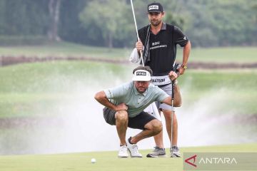 Pegolf Amerika Serikat Bubba Watson (depan) membidik posisi bola dengan lubang pada putaran pertama BNI Indonesian Masters 2024 di Royale Jakarta Golf Club, Jakarta, Kamis (31/10/2024). Pegolf asal Amerika Serikat yang pernah menjadi peringkat kedua dunia tersebut kini memulai debutnya di The International Series-nya pada BNI Indonesian Masters 2024. ANTARA FOTO/Asprilla Dwi Adha/YU