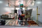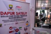 Pekerja menyiapkan makanan di dapur satelit untuk program makan bergizi gratis di SDN Sirahcai, Jatinangor, Kabupaten Sumedang, Jawa Barat, Senin (18/11/2024). Pemerintah Kabupaten Sumedang bekerja sama dengan Technolife Group membangun dapur satelit pertama di Indonesia guna mendukung program makan bergizi gratis dari pemerintah untuk siswa sekolah dasar, yang mampu menyediakan 600 porsi per hari dengan menu nasi, ayam, sop bola jamur, tempe, puding, dan susu. ANTARA FOTO/Raisan Al Farisi/nym.