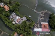 Foto udara pemukiman terdampak banjir rob di Kampung Sembilangan, Tarumajaya, Kabupaten Bekasi, Jawa Barat, Senin (18/11/2024). Banjir rob akibat pasang air laut menggenangi wilayah tersebut selama empat hari dengan ketinggian 30-50 cm. ANTARA FOTO/ Fakhri Hermansyah/rwa.