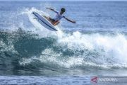 Peselancar beraksi saat bertanding pada Kejuaraan Surfing Internasional World Surf League (WSL) Manokwari Pro QS 1000 di Pantai Petrus Kafiar Amban, Manokwari, Papua Barat, Minggu (1/12/2024). Kejuaraan tersebut diikuti sebanyak 40 atlet Internasional dari berbagai negara seperti Jepang, Australia, Perancis, Amerika, Inggris, Spanyol, dan Malaysia pada kategori putra, putri, dan junior pro level di 20 tahun. ANTARA FOTO/Chairil Indra/agr