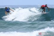 Dua peselancar beraksi saat bertanding pada Kejuaraan Surfing Internasional World Surf League (WSL) Manokwari Pro QS 1000 di Pantai Petrus Kafiar Amban, Manokwari, Papua Barat, Minggu (1/12/2024). Kejuaraan tersebut diikuti sebanyak 40 atlet Internasional dari berbagai negara seperti Jepang, Australia, Perancis, Amerika, Inggris, Spanyol, dan Malaysia pada kategori putra, putri, dan junior pro level di 20 tahun. ANTARA FOTO/Chairil Indra/agr
