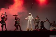 Seniman memerankan Raja Tombolotutu dalam pertunjukan teater kepahlawanan Pramupintu Tomene di Palu, Sulawesi Tengah, Jumat (6/12/2024) malam. Pertunjukan teater oleh Komunitas Seni Lobo yang difasilitasi Kemendikbud melalui program Fasilitasi Teater Pahlawan itu mengangkat cerita kepahlawan Raja Tombolotutu, satu-satunya Pahlawan Nasional dari Sulteng yang baru ditetapkan pada 2021 silam, tentang kegigihannya melawan penindasan kolonial. ANTARA FOTO/Basri Marzuki/foc.