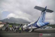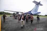 Sejumlah penumpang turun dari pesawat Trigana Air rute Ternate-Sanana setibanya di Bandara Emalamo Sanana, Maluku Utara, Jumat (13/12/2024). Layanan penerbangan perintis dengan rute Sanana, Ambon, sebanyak dua kali dalam seminggu tersebut menjadi salah satu alternatif bagi masyarakat Ternate dan manfaatnya dapat dirasakan secara langsung terutama di wilayah Terdepan, Terluar, Tertinggal, dan Perbatasan (3TP). ANTARA FOTO/Andri Saputra/nym.