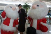 Pekerja bandara menggunakan kostum sinterklas berfoto dengan pramugari maskapai luar negeri saat Parade Sinterklas di Terminal 3 Bandara Soekarno Hatta, Tangerang, Banten, Jumat (20/12/2024). Parade sinterklas tersebut dalam rangka menyambut Natal 2024 untuk menghibur para penumpang dan pengguna jasa Bandara Soekarno Hatta. ANTARA FOTO/Muhammad Iqbal/foc.