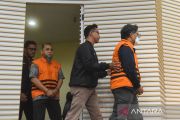 Direktur PT Prakarsa Nusa Bakti (PNB) periode 2012-2016 Roberto Pangasian Lumban Gaol (tengah) dan pegawai PT Prakarsa Nusa Bakti (2016-2018) Afrian Jafar (kanan) mengenakan rompi tahanan usai ditetapkan sebagai tersangka kasus dugaan korupsi pengadaan server dan storage oleh PT PNB kepada PT SCC di Gedung Merah Putih KPK, Jakarta, Jumat (10/1/2025). KPK menahan Roberto Pangasian Lumban Gaol dan Afrian Jafar terkait dugaan korupsi pengadaan atau pembelian fiktif server dan storage oleh PT Prakarsa Nusa Bakti (PNB) kepada PT Sigma Cipta Caraka (SCC) yang merupakan anak Perusahaan PT. Telkom pada tahun 2017 yang menyebabkan kerugian negara sebesar Rp280 miliar. ANTARA FOTO/Indrianto Eko Suwarso/rwa.