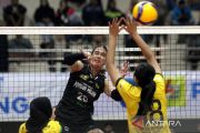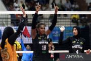 Pebola voli putri Jakarta Popsivo Polwan Bethania De La Cruz (tengah) bersama rekan setimnya melakukan selebrasi usai mencetak poin saat laga melawan tim Gresik Petrokimia Pupuk Indonesia dalam pertandingan Proliga 2025 Putaran Pertama Minggu Ketiga di GOR Ken Arok, Malang, Jawa Timur, Sabtu (18/1/2025). Jakarta Popsivo mengalahkan Gresik Petrokimia dengan skor 3-0 (25-13, 25-22, 25-19). ANTARA FOTO/Ari Bowo Sucipto/Spt.