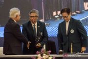 Rektor Institut Teknologi Bandung (ITB) Prof. Dr. Ir. Tatacipta Dirgantara (tengah) berjabat tangana dengan Menteri Dikti Saintek Satryo Soemantri (kiri) dan Menteri Kesehatan sekaligus Ketua Majelis Wali Amanat Budi Gunadi Sadikin (kanan) saat Sidang Terbuka Majelis Wali Amanat Pelantikan Rektor ITB di Aula Barat Kampus ITB, Bandung, Jawa Barat, Senin (20/1/2025). Prof. Dr. Ir. Tatacipta Dirgantara resmi dilantik menjadi Rektor ITB untuk periode 2025-2030 menggantikan Prof. Reini Wirahadikusumah. ANTARA FOTO/Novrian Arbi/nz