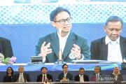 Menteri Kesehatan sekaligus Ketua Majelis Wali Amanat Budi Gunadi Sadikin (tengah) bersama Menteri Dikti Saintek Satryo Soemantri (kedua kiri), Rektor Institut Teknologi Bandung (ITB) Prof. Dr. Ir. Tatacipta Dirgantara (kedua kanan) dan Rektor ITB periode 2020-2025 Prof Reini Wirahadikusumah (kiri) memimpin jalannya Sidang Terbuka Majelis Wali Amanat Pelantikan Rektor ITB di Aula Barat Kampus ITB, Bandung, Jawa Barat, Senin (20/1/2025). Prof. Dr. Ir. Tatacipta Dirgantara resmi dilantik menjadi Rektor ITB untuk periode 2025-2030 menggantikan Prof. Reini Wirahadikusumah. ANTARA FOTO/Novrian Arbi/nz