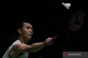 Pebulu tangkis tunggal putra Indonesia Jonatan Christie mengembalikan kok saat melawan tunggal putra Jepang Kenta Nishimoto pada perempat final Daihatsu Indonesia Masters 2025 di Istora Senayan, Jakarta, Jumat (24/1/2025). Jonatan Christie berhasil melaju ke semifinal usai menang 17-21, 21-13 dan 21-11. ANTARA FOTO/Fauzan/YU