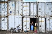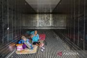 Seorang pengungsi beristirahat di dalam kontainer kosong di Rorotan, Jakarta, Jumat (31/1/2025). Warga Kampung Sepatan, RT 18/05, Rorotan, Cilincing terpaksa mengungsi ke kontainer kosong setelah kediamannya terendam banjir setinggi satu meter. ANTARA FOTO/Rivan Awal Lingga/rwa.