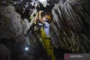 Pegiat susur gua yang tergabung Tasikmalaya Caving Community (TCC) melakukan susur Gua Cikalong di Kabupaten Tasikmalaya, Jawa Barat, Minggu (2/2/2025). Kegiatan pemetaan dan pendataan itu dilakukan untuk meneliti ekosistem mikroorganisme di dalam gua dengan panjang mencapai 54 meter di kawasan karst yang memiliki kadar air 7,6 pH (potential hydrogen) dengan konsentrasi 132 ppm (part per million). ANTARA FOTO/Adeng Bustomi/nym.