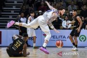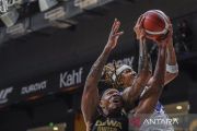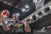 Pebasket Dewa United Banten Lester Prosper melakukan rebound saat melawan tim Tangerang Hawks Basketball pada pertandingan Indonesia Basketball League (IBL) 2025 di Dewa United Arena, Kabupaten Tangerang, Banten, Sabtu (8/2/2025). Dewa United Banten menang atas Tangerang Hawks Basketball dengan skor 109-82. ANTARA FOTO/Galih Pradipta/Spt.