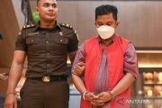 Petugas menggiring buronan Wayan Depa Yogiana (tengah) setibanya di Kantor Kejaksaan Tinggi (Kejati) Bali, Denpasar, Bali,Rabu (19/2/2025). Terpidana kasus penggelapan uang pemberangkatan calon pekerja migran Indonesia yang buron sejak Oktober 2024 itu ditangkap jajaran kejaksaan di Pelabuhan Internasional Harbourbay Batam saat akan memasuki wilayah Indonesia dari Malaysia pada Senin (17/2). ANTARA FOTO/Fikri Yusuf/nym.