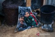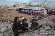 Anak-anak Karam Haloub bermain di dekat rumah mereka yang rusak di Beit Lahia di Jalur Gaza utara, Senin (3/2/2025). Karam Haloub (39) yang sempat pindah ke tenda pengungsian di Kota Gaza, bersikeras untuk tinggal bersama istri dan lima anaknya di rumah mereka sendiri di Kota Beit Lahia, setelah deklarasi gencatan senjata, namun tempat tinggal mereka baru saja dihancurkan serangan. ANTARA FOTO/Xinhua/Rizek Abdeljawad/Spt.