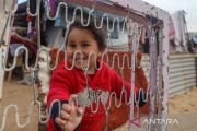 Salah satu anak Karam Haloub bermain di dekat rumah mereka yang rusak di Beit Lahia di Jalur Gaza utara, Senin (3/2/2025). Karam Haloub (39) yang sempat pindah ke tenda pengungsian di Kota Gaza, bersikeras untuk tinggal bersama istri dan lima anaknya di rumah mereka sendiri di Kota Beit Lahia, setelah deklarasi gencatan senjata, namun tempat tinggal mereka baru saja dihancurkan Israel. ANTARA FOTO/Xinhua/Rizek Abdeljawad/Spt.