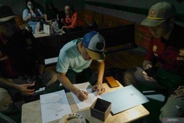 Pengelola kafe menandatangani surat pernyataan untuk tidak buka selama Ramadhan di Tulungagung, Jawa Timur, Selasa (11/3/2025). Tujuh kafe karaoke yang kedapatan masih membuka layanan dengan menyediakan jasa pemandu lagu langsung ditutup dan tidak boleh beroperasi hingga akhir Ramadhan. ANTARA FOTO/Destyan Sujarwoko/nym.