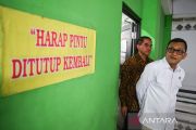 Petugas menyegel Perusahaan Penempatan Pekerja Migran Indonesia (P3MI) PT Elshafah Adi Wiguna Mandiri di Condet, Jakarta, Jumat (21/3/2025). Penyegelan tersebut dikarenakan PT Elshafah Adi Wiguna Mandiri melakukan penempatan PMI ke Arab Saudi di tengah moratorium. ANTARA FOTO/Rivan Awal Lingga/rwa.