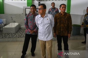 Menteri Pelindungan Pekerja Migran Indonesia (P2MI) Abdul Kadir Karding (tengah) bersama Sekjen Kementerian P2MI Irjen Pol Dwiyono (kanan) melihat salah satu ruangan milik Perusahaan Penempatan Pekerja Migran Indonesia (P3MI) PT Elshafah Adi Wiguna Mandiri usai disegel di Condet, Jakarta, Jumat (21/3/2025). Penyegelan tersebut dikarenakan PT Elshafah Adi Wiguna Mandiri melakukan penempatan PMI ke Arab Saudi di tengah moratorium. ANTARA FOTO/Rivan Awal Lingga/rwa.