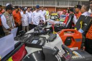 Menko PMK Pratikno (kiri) bersama Menlu Sugiono (kempat kiri), Kepala Basarnas Marsda TNI Mohammad Syafii (kedua kiri) dan Kepala PMI Jusuf Kalla (ketiga kiri) melakukan pengecekan perlengkapan SAR saat Apel Pelepasan Bantuan ke Myanmar di Lanud Halim Perdanakusuma, Jakarta, Kamis (3/4/2025). Pemerintah Indonesia kembali mengirim bantuan kemanusiaan tahap ketiga untuk para korban bencana gempa bumi Myanmar berupa obat-obatan, alat kesehatan dengan total seberat 124 ton atau senilai Rp20,89 miliar beserta 65 personel INASAR yang diangkut menggunakan pesawat kargo dan pesawat carter Garuda 747-800. ANTARA FOTO/Galih Pradipta/nym.