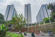 Warga menunjukkan tampilan Sistem Informasi Rumah dan Permukiman (Sirukim) dengan latarn belakang Rusunawa Green Jagakarsa di Jakarta, Jumat (11/4/2025). Pemprov DKI Jakarta membuka pendaftaran bagi warga berpenghasilan rendah yang ingin menghuni rusunawa tersebut dengan kuota sebanyak 200 calon penghuni melalui Sirukim. ANTARA FOTO/Ferlian Septa Wahyusa/tom.