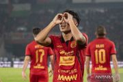 Pesepak bola Persija Jakarta Muhammad Rayhan Hannan (tengah) melakukan seleberasi usai mencetak gol ke gawang Persebaya Surabaya pada pertandingan BRI Liga 1 di Stadion Utama Gelora Bung Karno, Senayan, Jakarta, Sabtu (12/4/2025). Persija Jakarta bermain imbang melawan Persebaya Surabaya dengan skor 1-1. ANTARA FOTO/Bayu Pratama S/YU